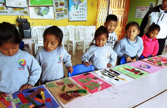 The children’s response to this week long art project was more engaged and enthusiastic than we ever could have imagined. We have concluded that this is the kind of educational experience they are hungry for. Our hope is to provide more enriching art, music, theater and dance experiences throughout the years as we continue to strengthen our involvement with this school. The work is satisfying for both the receivers and the givers. We hope to encourage more volunteers to invest in providing these creative avenues of expression for the children in Otavalo. Otavalo is an artisanal town, attracting artists, weavers, musicians and creative types from all over Ecuador and the world. It is hoped that by offering more creative arts within the primary schools, these talents and interests will be nurtured and supported, giving these children more options for self-expression and eventual employment as they mature.